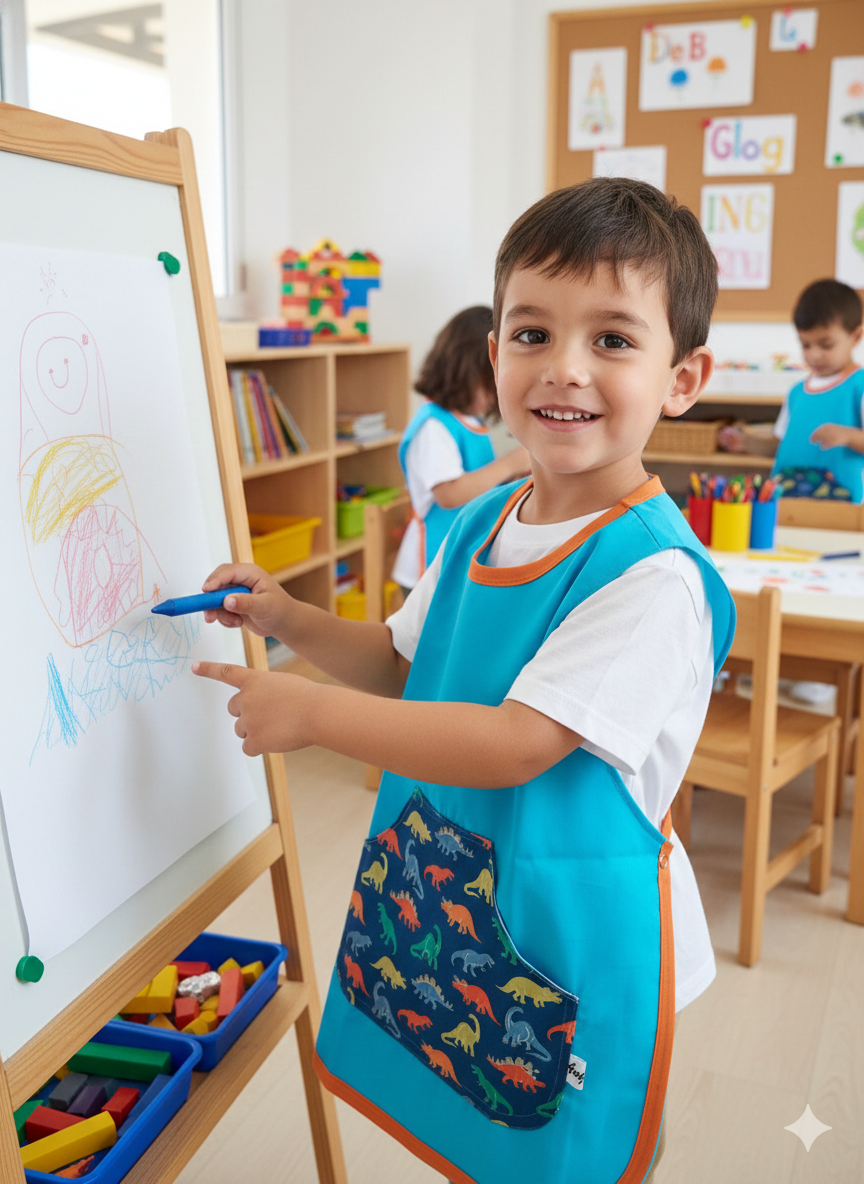 Pechera escolar confeccionada con tela ACROCEL de ARCIEL INTA Premium, resistente y de excelente calidad, ideal para el uso diario.