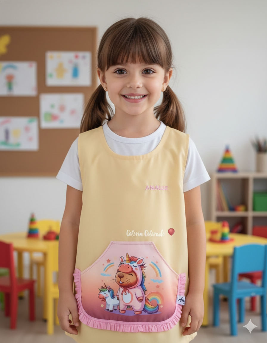 Pechera escolar confeccionada con tela ACROCEL de ARCIEL INTA Premium, resistente y de excelente calidad, ideal para el uso diario.