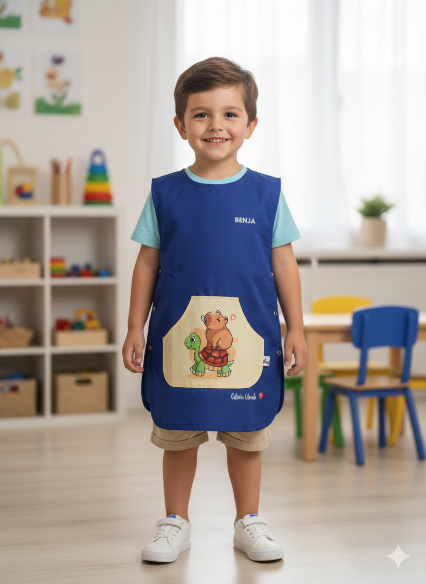 Pechera escolar confeccionada con tela ACROCEL de ARCIEL INTA Premium, resistente y de excelente calidad, ideal para el uso diario.