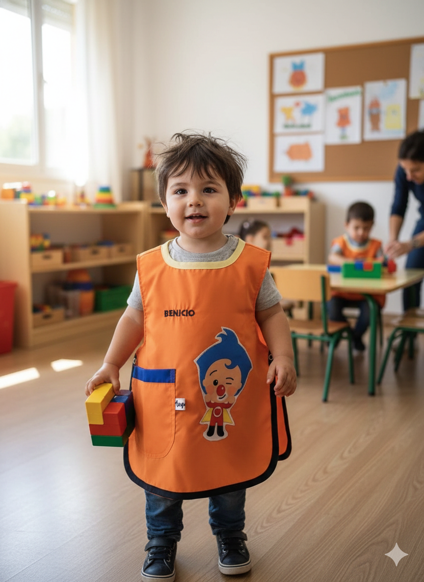 Pechera escolar confeccionada con tela ACROCEL de ARCIEL INTA Premium, resistente y de excelente calidad, ideal para el uso diario.