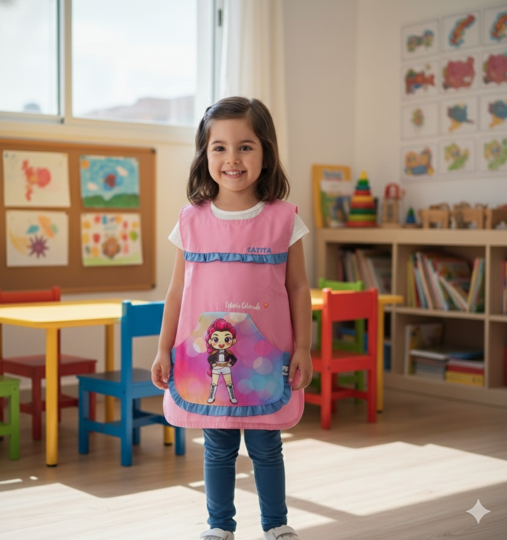 Pechera escolar confeccionada con tela ACROCEL de ARCIEL INTA Premium, resistente y de excelente calidad, ideal para el uso diario.
