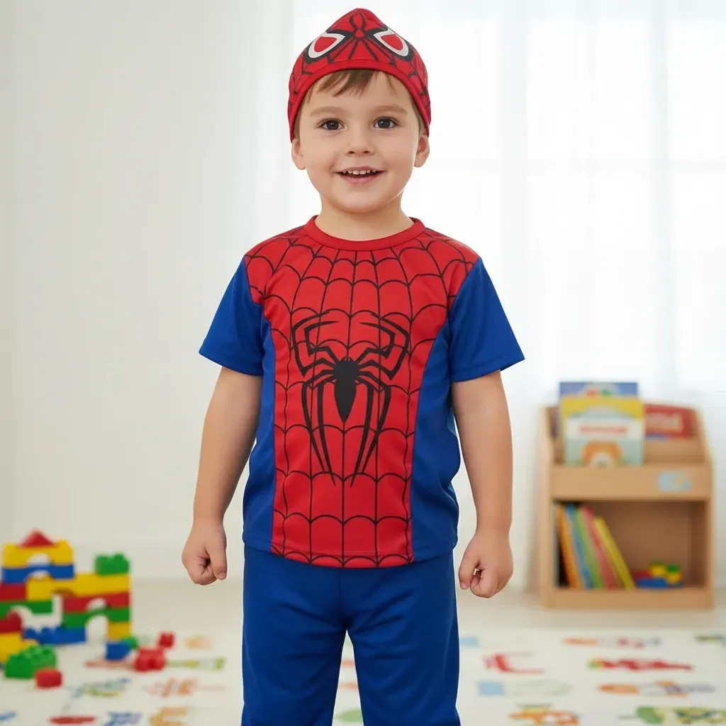 Talles: 4 (2 a 3 años) - 6 (3 a 4 años) - 8 (4 y 5 años) - 10 (6 a 7 años) - 12 (8 a 9 años) EL TALLE DEPENDE DE LA CONTEXTURA DEL NIÑO, SE ACONSEJA COMPRAR UN TALLE MAS A LO QUE USA DE REMERA. EJEMPLO, SI SU HIJO USA TALLE 4 EN ESTOS DISFRACES ES 6.