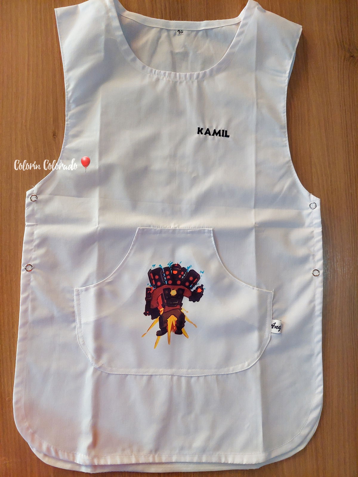 Pechera escolar confeccionada con tela ACROCEL de ARCIEL INTA Premium, resistente y de excelente calidad, ideal para el uso diario.